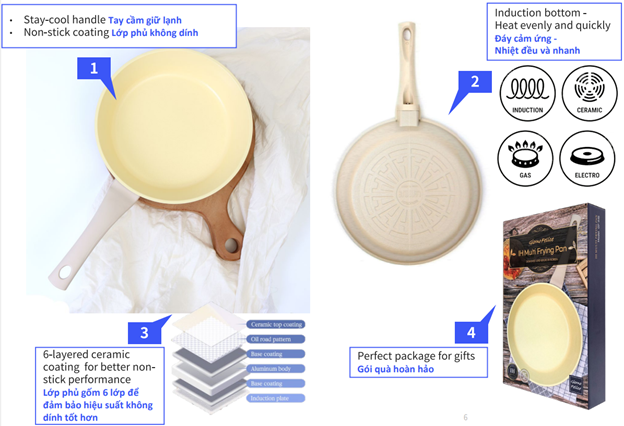 - Phủ gốm 6 lớp để đảm bảo hiệu suất không dính đặc biệt tốt hơn.