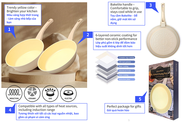 - Đặc biệt màu sắc vàng óng đem lại cảm giác sạch sẽ, sang trọng. Giúp người nấu nhanh chóng nhận biết được độ chín của thức ăn từng giai đoạn.