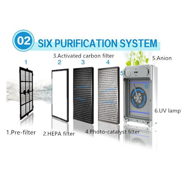 + Khử mùi: khí thải, vật nuôi, thuốc lá, bếp nấu ăn v.v… qua màng lọc than hoạt tính.
