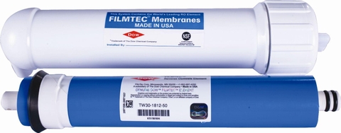 - Màng lọc RO được cấu tạo từ tấm màng mỏng bằng chất liệu đặc biệt (TFC – Thin Film Composite), được gắn chặt và cuộn lại với nhau thành một cấu hình dạng xoắn ốc. Trên bề mặt màng gồm các lỗ nhỏ có kích thước khoảng 0.1 – 0.5 nanomet (to hơn chỉ vài ba phân tử H2O), vì thế chỉ cho các phân tử nước đi qua cho nguồn nước đầu ra hoàn toàn tinh khiết. (hình ảnh cắt lớp của RO)